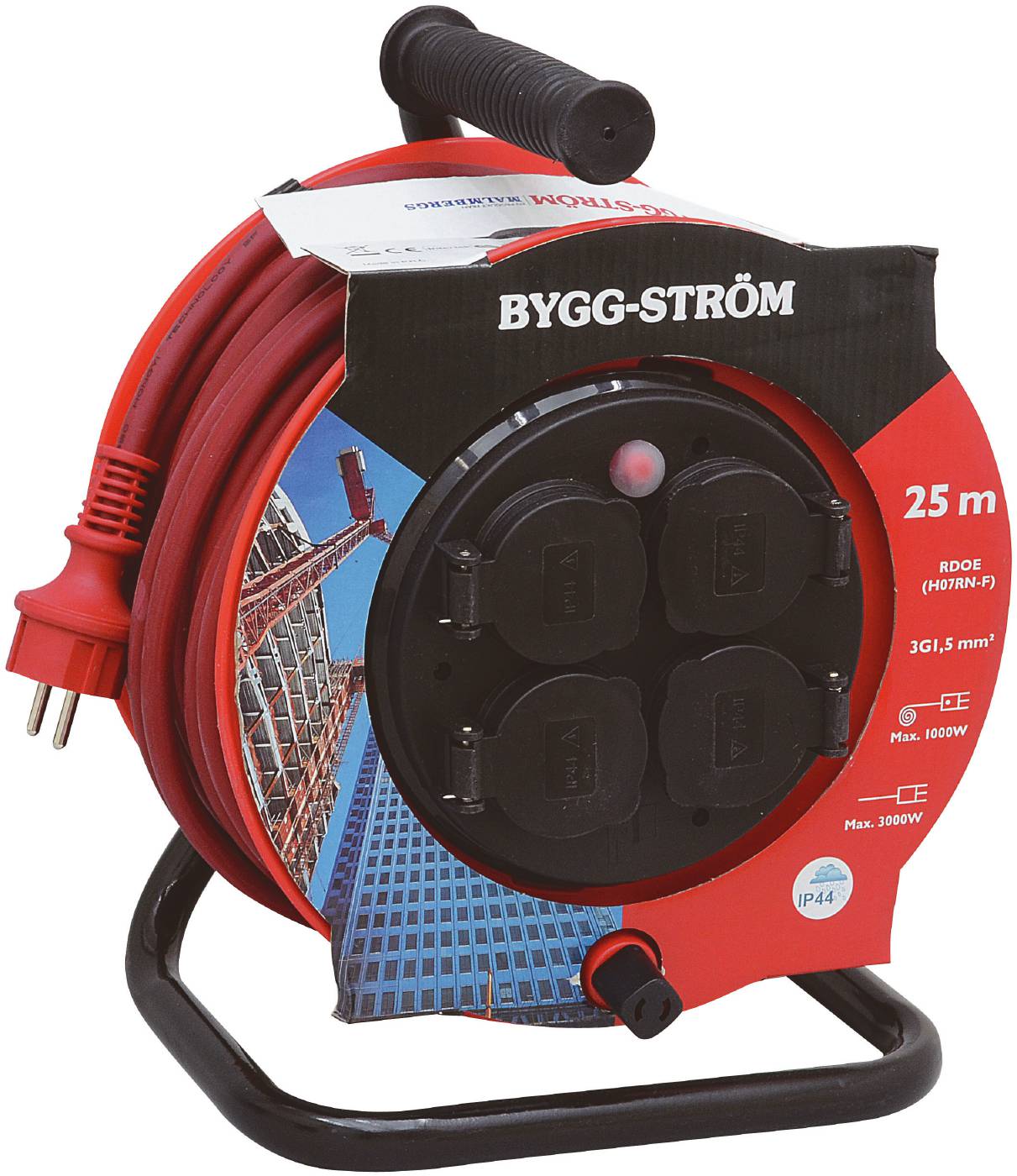KABELTROMMEL 4-VEIS BYGG-STRØM H07RN-F FAST SENTER 3G1,5 25M
